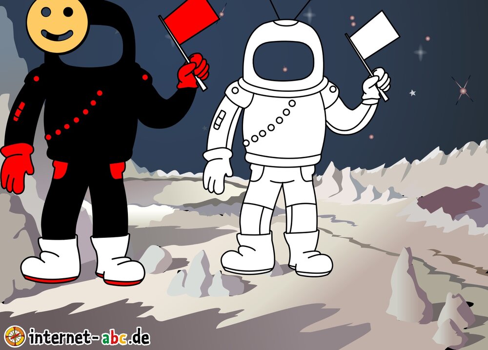 Mit der Rakete fliegen die 4 Internet-ABC-Tiere in den Weltraum. Was sie dort sehen und erleben, könnt ihr in diesem Baukasten malen und erzählen.