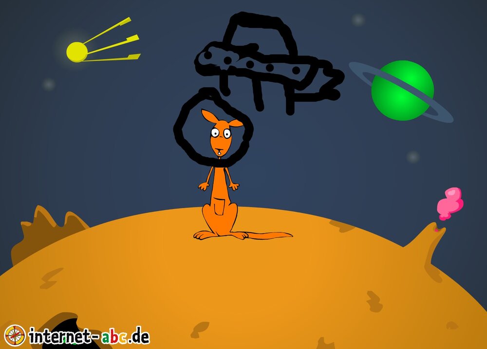 Mit der Rakete fliegen die 4 Internet-ABC-Tiere in den Weltraum. Was sie dort sehen und erleben, könnt ihr in diesem Baukasten malen und erzählen.