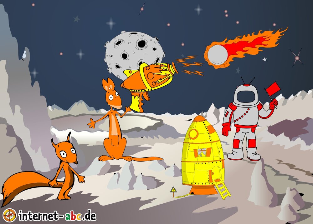 Mit der Rakete fliegen die 4 Internet-ABC-Tiere in den Weltraum. Was sie dort sehen und erleben, könnt ihr in diesem Baukasten malen und erzählen.