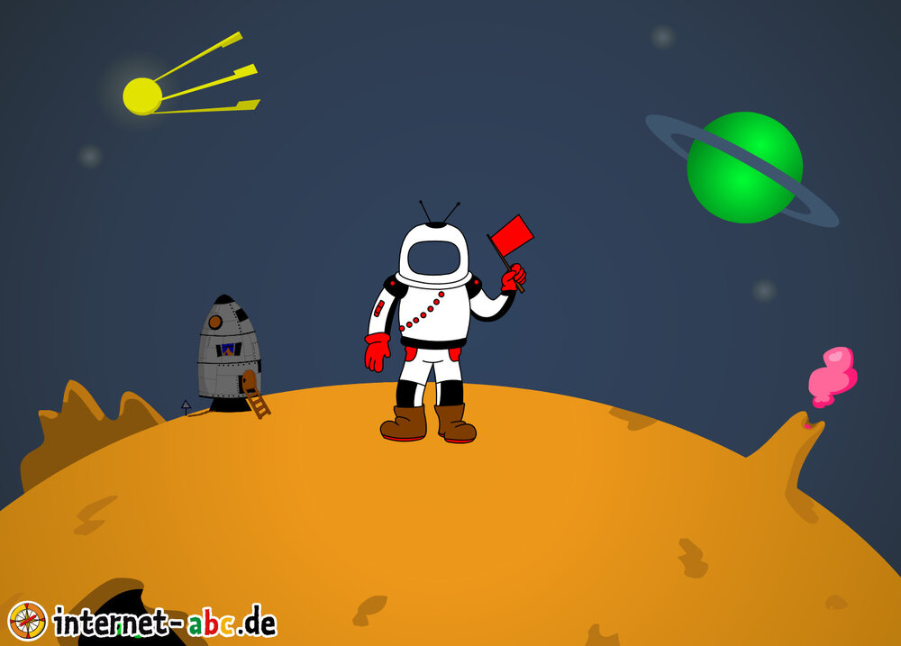 Mit der Rakete fliegen die 4 Internet-ABC-Tiere in den Weltraum. Was sie dort sehen und erleben, könnt ihr in diesem Baukasten malen und erzählen.