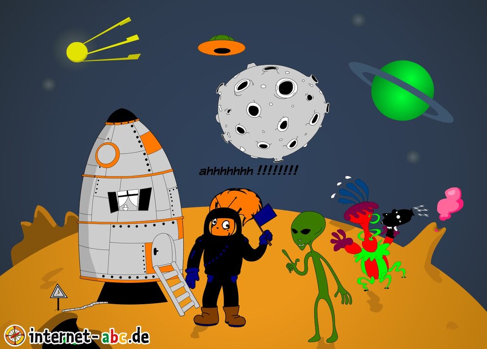 Hier kannst du sehen, welche Bilder es schon zum Thema Weltraum gibt. Klicke auf ein Bild oder eine Überschrift, um zur Seite zu gelangen. Dort findest du auch eine passende Geschichte zum Bild.