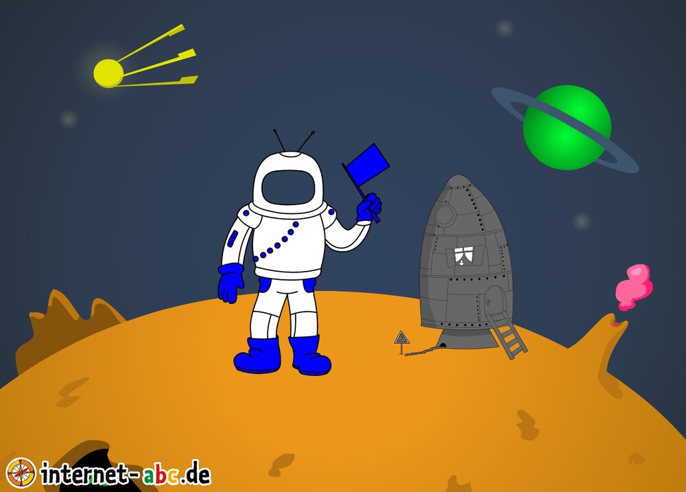 Mit der Rakete fliegen die 4 Internet-ABC-Tiere in den Weltraum. Was sie dort sehen und erleben, könnt ihr in diesem Baukasten malen und erzählen.