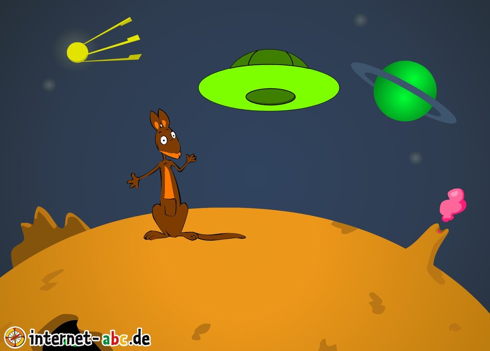 Mit der Rakete fliegen die 4 Internet-ABC-Tiere in den Weltraum. Was sie dort sehen und erleben, könnt ihr in diesem Baukasten malen und erzählen.