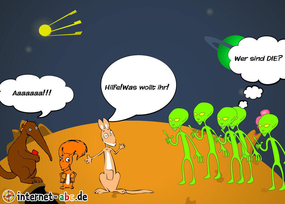 Mit der Rakete fliegen die 4 Internet-ABC-Tiere in den Weltraum. Was sie dort sehen und erleben, könnt ihr in diesem Baukasten malen und erzählen.