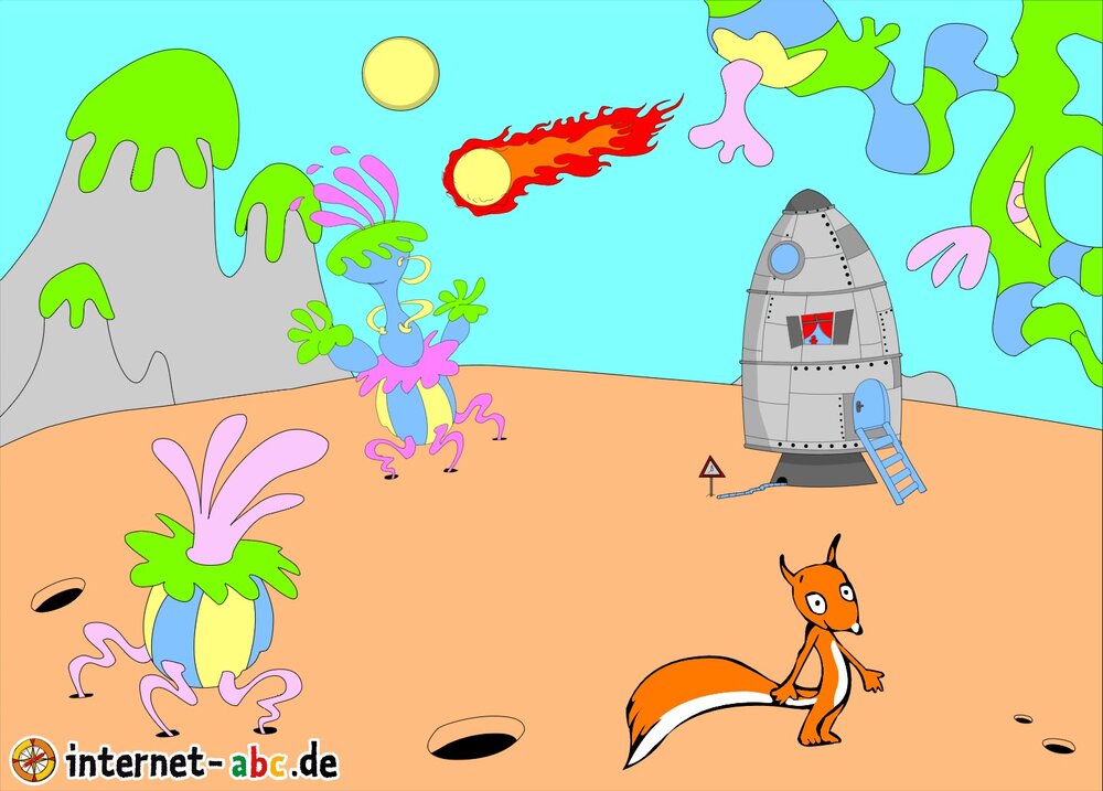 Mit der Rakete fliegen die 4 Internet-ABC-Tiere in den Weltraum. Was sie dort sehen und erleben, könnt ihr in diesem Baukasten malen und erzählen.