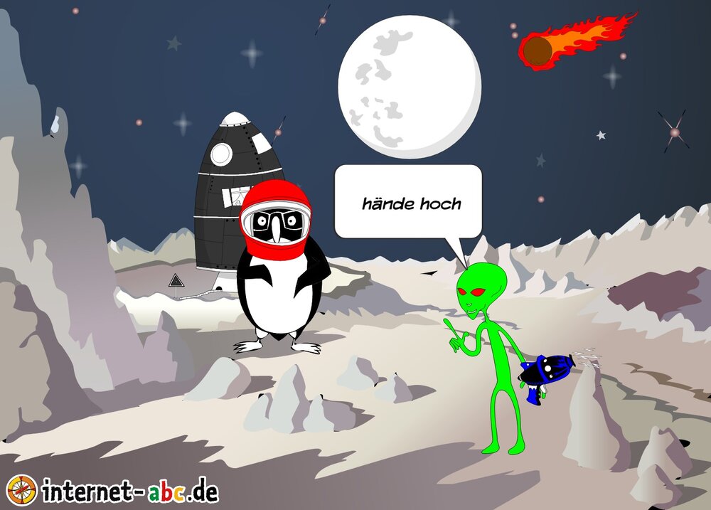 Mit der Rakete fliegen die 4 Internet-ABC-Tiere in den Weltraum. Was sie dort sehen und erleben, könnt ihr in diesem Baukasten malen und erzählen.