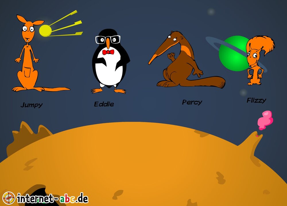 Mit der Rakete fliegen die 4 Internet-ABC-Tiere in den Weltraum. Was sie dort sehen und erleben, könnt ihr in diesem Baukasten malen und erzählen.