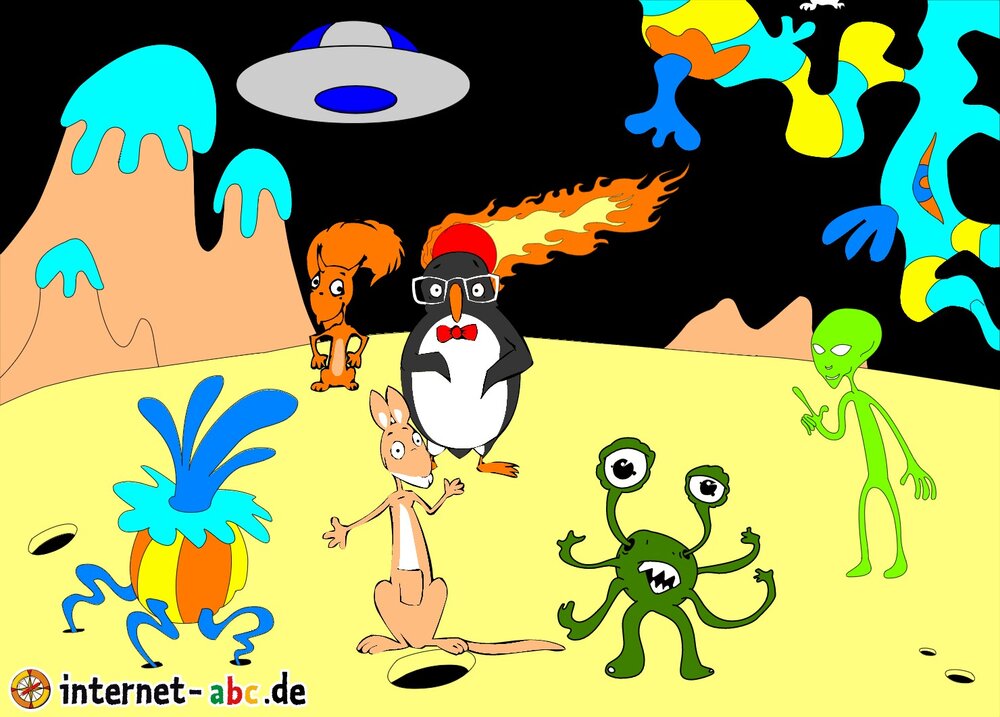 Mit der Rakete fliegen die 4 Internet-ABC-Tiere in den Weltraum. Was sie dort sehen und erleben, könnt ihr in diesem Baukasten malen und erzählen.