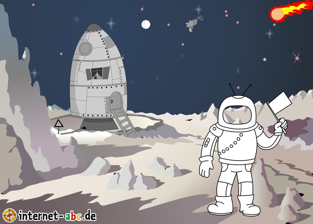 Mit der Rakete fliegen die 4 Internet-ABC-Tiere in den Weltraum. Was sie dort sehen und erleben, könnt ihr in diesem Baukasten malen und erzählen.