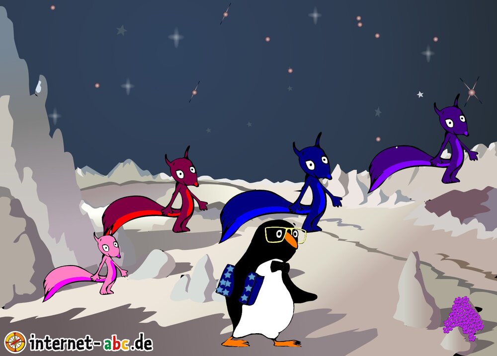 Mit der Rakete fliegen die 4 Internet-ABC-Tiere in den Weltraum. Was sie dort sehen und erleben, könnt ihr in diesem Baukasten malen und erzählen.