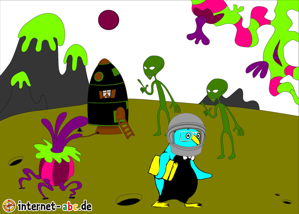 Mit der Rakete fliegen die 4 Internet-ABC-Tiere in den Weltraum. Was sie dort sehen und erleben, könnt ihr in diesem Baukasten malen und erzählen.