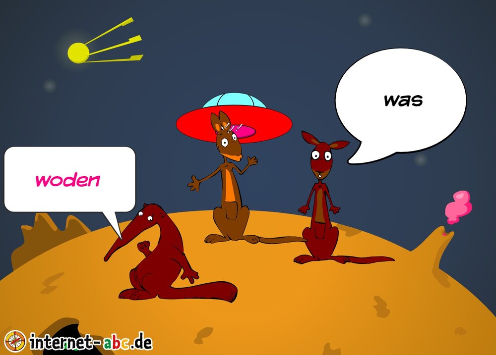 Mit der Rakete fliegen die 4 Internet-ABC-Tiere in den Weltraum. Was sie dort sehen und erleben, könnt ihr in diesem Baukasten malen und erzählen.