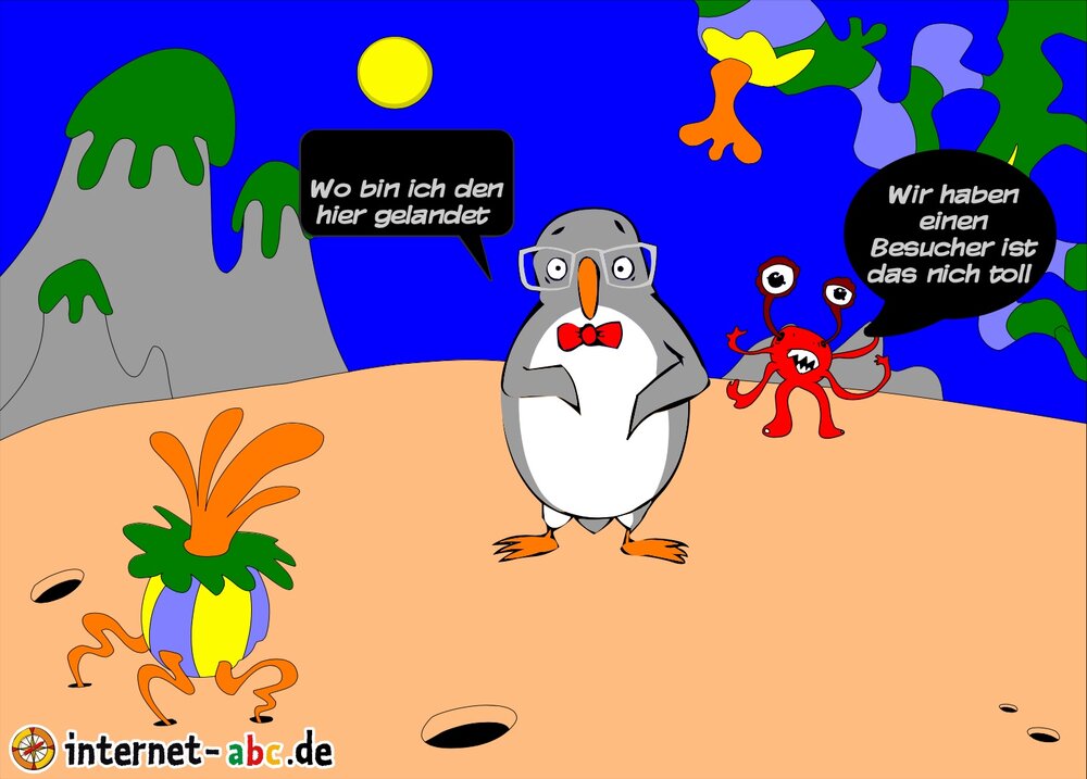 Mit der Rakete fliegen die 4 Internet-ABC-Tiere in den Weltraum. Was sie dort sehen und erleben, könnt ihr in diesem Baukasten malen und erzählen.