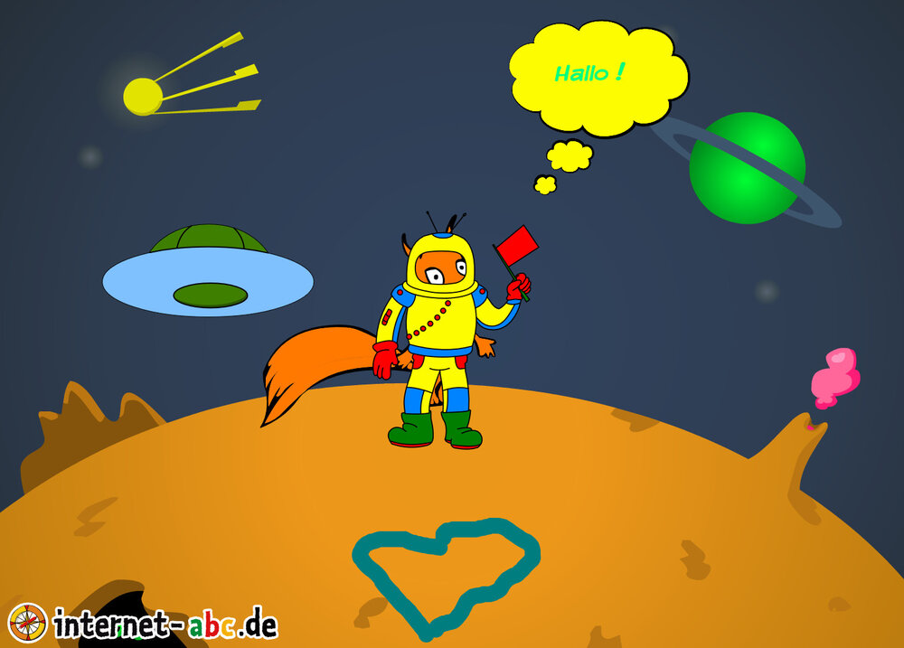Mit der Rakete fliegen die 4 Internet-ABC-Tiere in den Weltraum. Was sie dort sehen und erleben, könnt ihr in diesem Baukasten malen und erzählen.