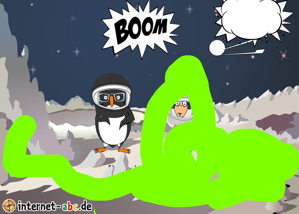 Mit der Rakete fliegen die 4 Internet-ABC-Tiere in den Weltraum. Was sie dort sehen und erleben, könnt ihr in diesem Baukasten malen und erzählen.
