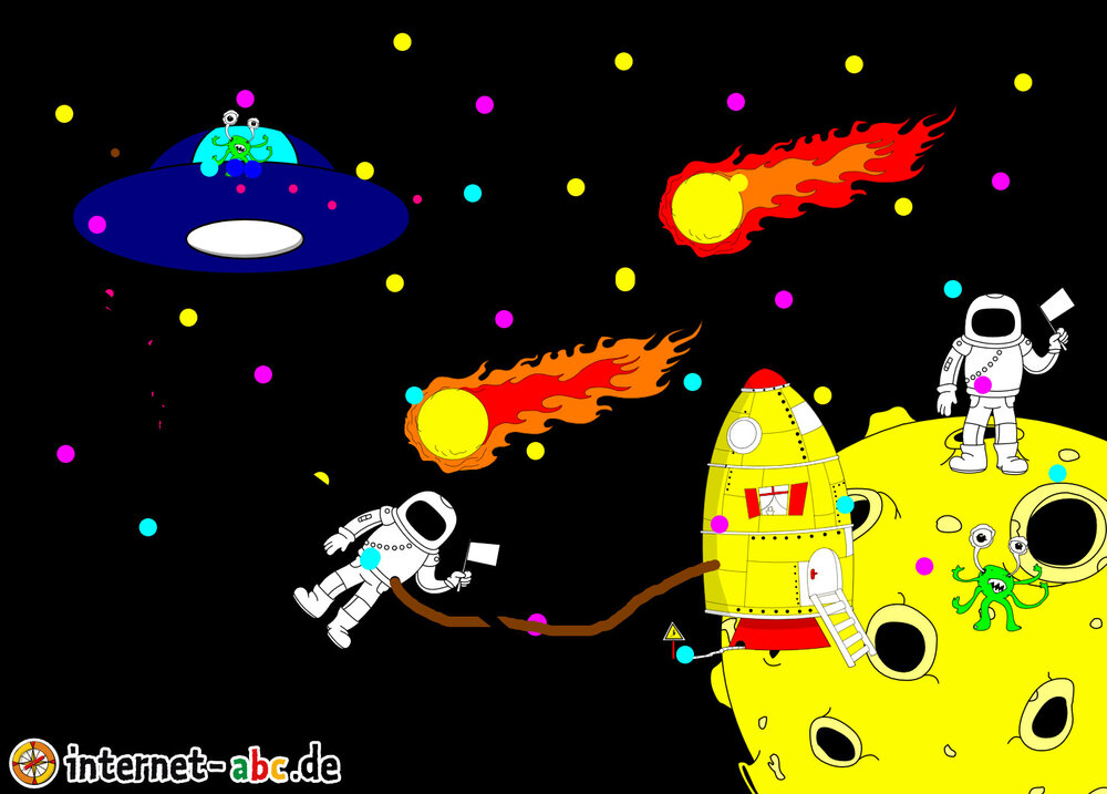 Hier kannst du sehen, welche Bilder es schon zum Thema Weltraum gibt. Klicke auf ein Bild oder eine Überschrift, um zur Seite zu gelangen. Dort findest du auch eine passende Geschichte zum Bild.