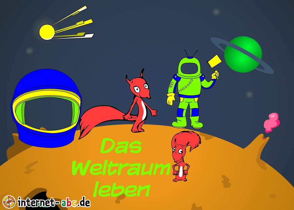 Mit der Rakete fliegen die 4 Internet-ABC-Tiere in den Weltraum. Was sie dort sehen und erleben, könnt ihr in diesem Baukasten malen und erzählen.