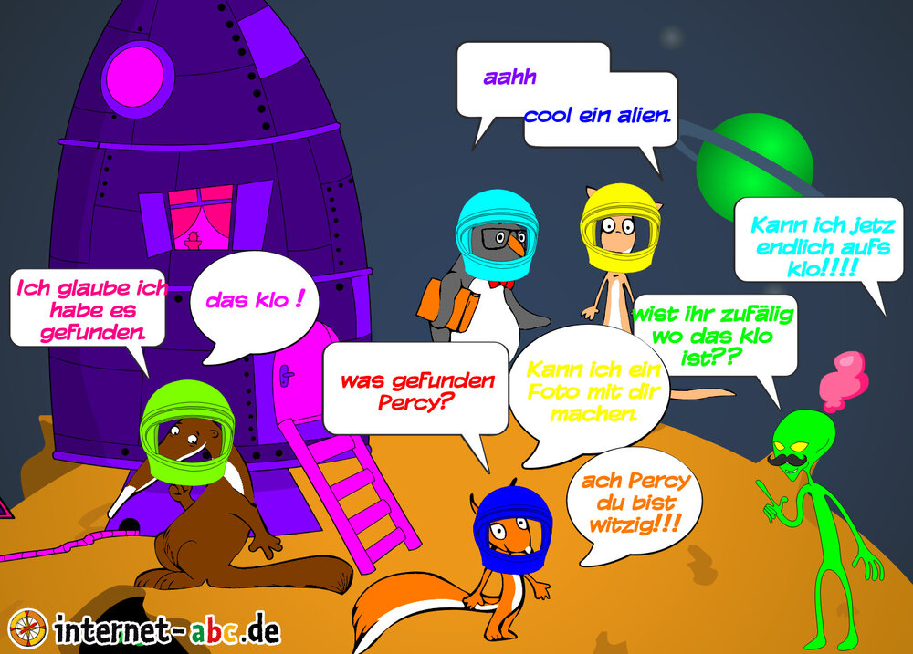 Mit der Rakete fliegen die 4 Internet-ABC-Tiere in den Weltraum. Was sie dort sehen und erleben, könnt ihr in diesem Baukasten malen und erzählen.