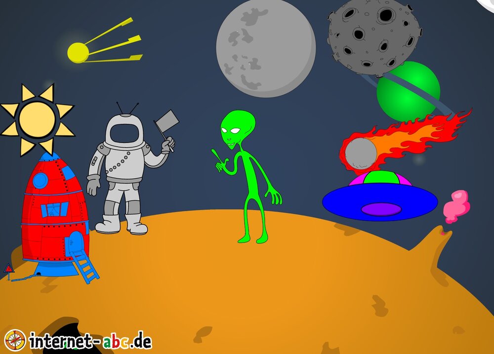 Hier kannst du sehen, welche Bilder es schon zum Thema Weltraum gibt. Klicke auf ein Bild oder eine Überschrift, um zur Seite zu gelangen. Dort findest du auch eine passende Geschichte zum Bild.
