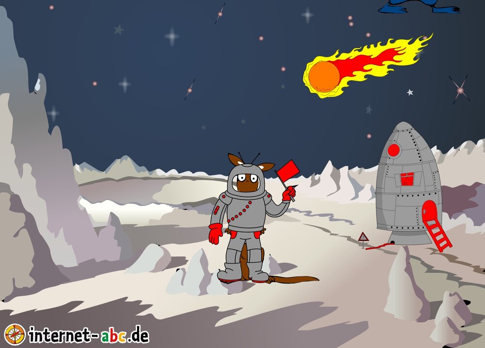 Mit der Rakete fliegen die 4 Internet-ABC-Tiere in den Weltraum. Was sie dort sehen und erleben, könnt ihr in diesem Baukasten malen und erzählen.