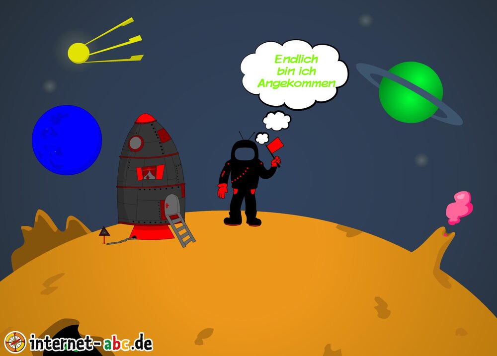 Mit der Rakete fliegen die 4 Internet-ABC-Tiere in den Weltraum. Was sie dort sehen und erleben, könnt ihr in diesem Baukasten malen und erzählen.