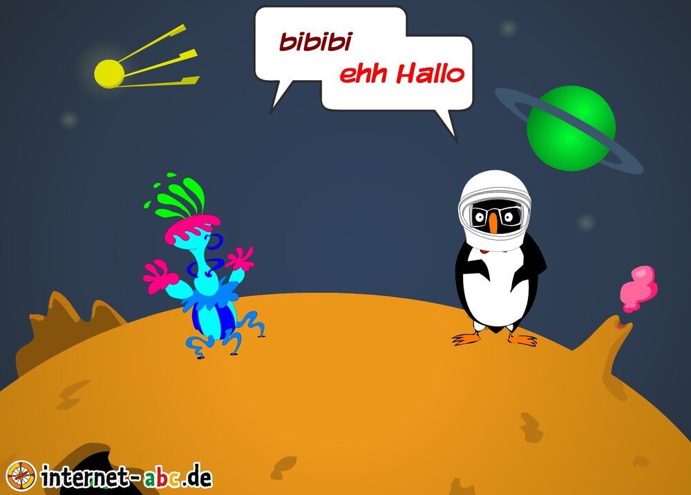 Mit der Rakete fliegen die 4 Internet-ABC-Tiere in den Weltraum. Was sie dort sehen und erleben, könnt ihr in diesem Baukasten malen und erzählen.