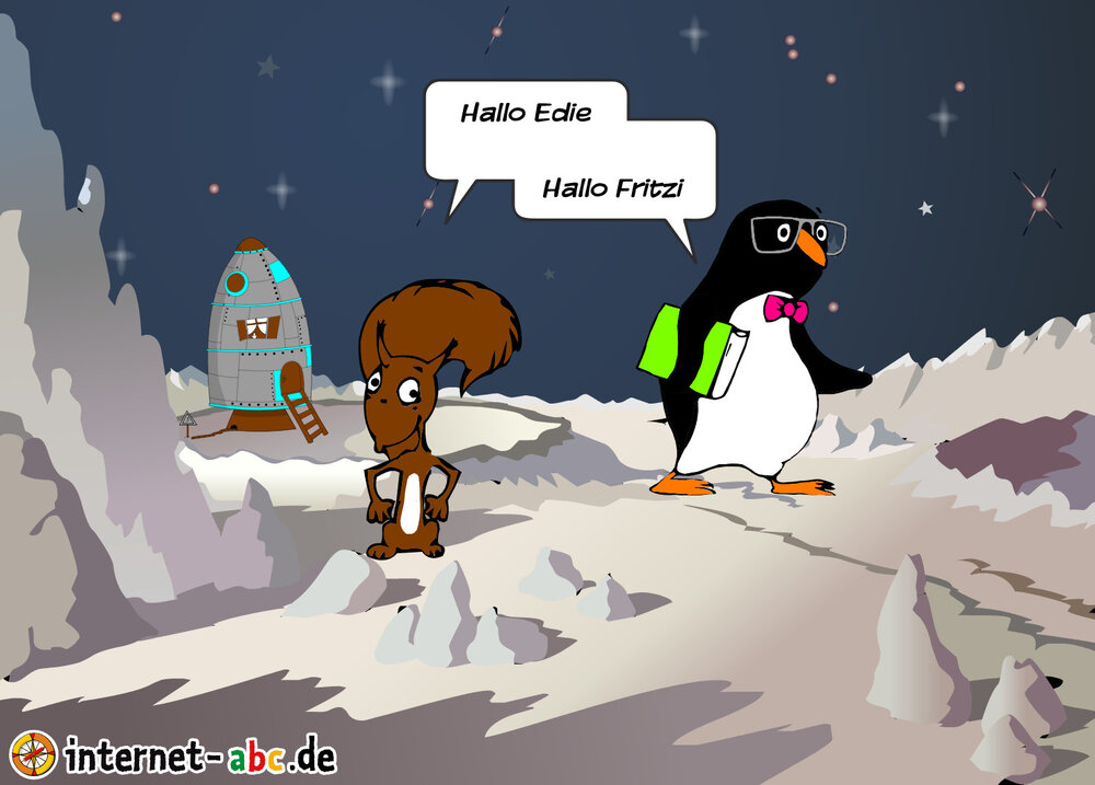 Mit der Rakete fliegen die 4 Internet-ABC-Tiere in den Weltraum. Was sie dort sehen und erleben, könnt ihr in diesem Baukasten malen und erzählen.