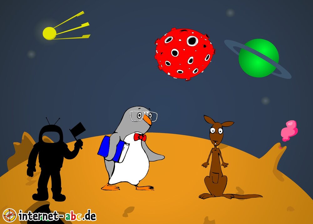 Mit der Rakete fliegen die 4 Internet-ABC-Tiere in den Weltraum. Was sie dort sehen und erleben, könnt ihr in diesem Baukasten malen und erzählen.
