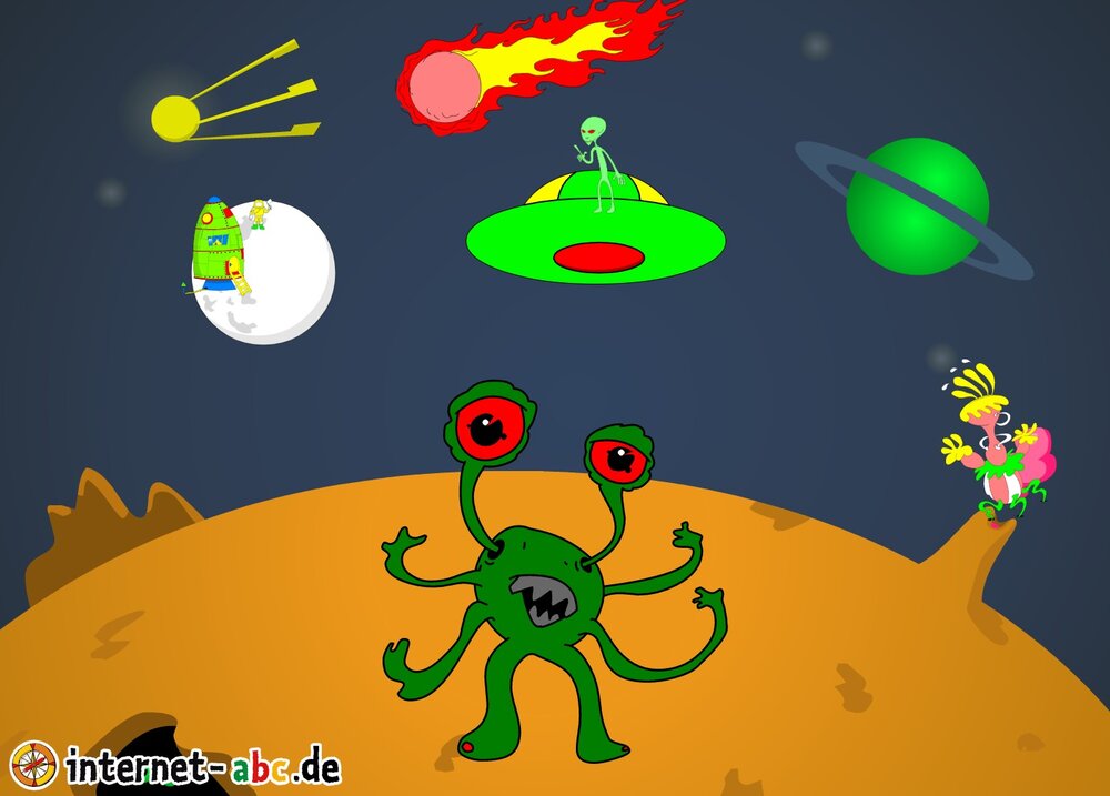 Hier kannst du sehen, welche Bilder es schon zum Thema Weltraum gibt. Klicke auf ein Bild oder eine Überschrift, um zur Seite zu gelangen. Dort findest du auch eine passende Geschichte zum Bild.
