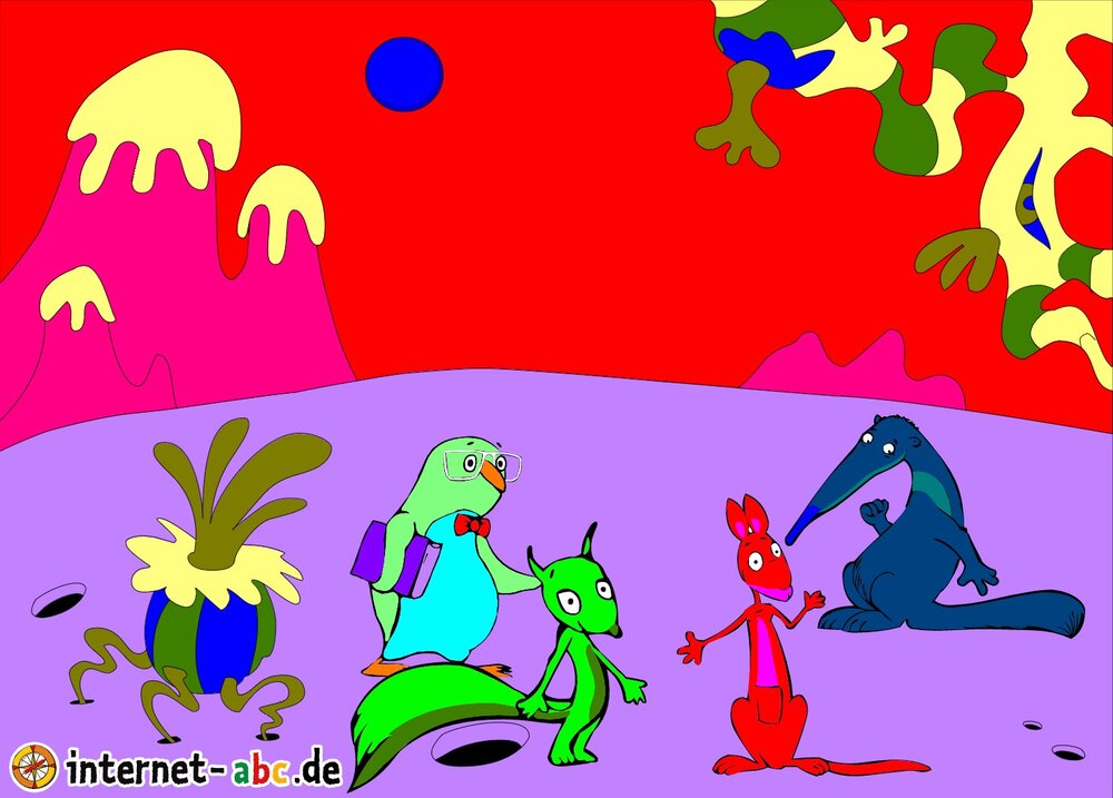 Mit der Rakete fliegen die 4 Internet-ABC-Tiere in den Weltraum. Was sie dort sehen und erleben, könnt ihr in diesem Baukasten malen und erzählen.