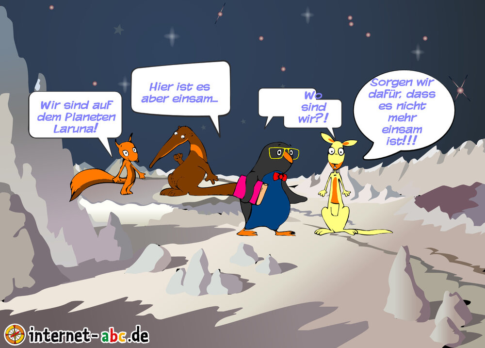 Es ist Abend und die vier Freunde kommen auf Laruna an. Erst ist es sehr einsam dort, doch die vier Freunde machen aus Laruna einen Kunterbunten Planeten und laden all ihre Freunde, Verwanten und Bekannten ein, um auf den Planeten mehr Leben zu bringen!