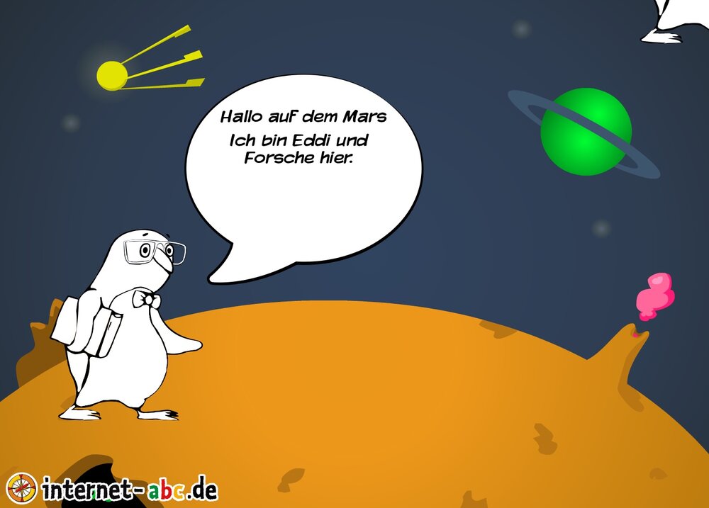 Mit der Rakete fliegen die 4 Internet-ABC-Tiere in den Weltraum. Was sie dort sehen und erleben, könnt ihr in diesem Baukasten malen und erzählen.