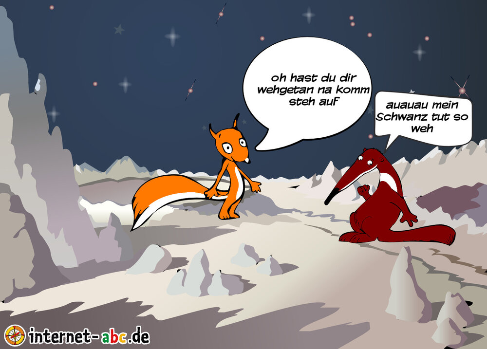 Mit der Rakete fliegen die 4 Internet-ABC-Tiere in den Weltraum. Was sie dort sehen und erleben, könnt ihr in diesem Baukasten malen und erzählen.