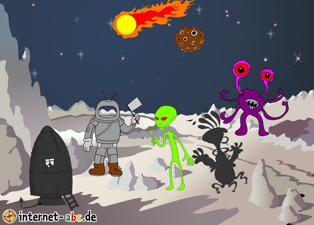 Hier kannst du sehen, welche Bilder es schon zum Thema Weltraum gibt. Klicke auf ein Bild oder eine Überschrift, um zur Seite zu gelangen. Dort findest du auch eine passende Geschichte zum Bild.
