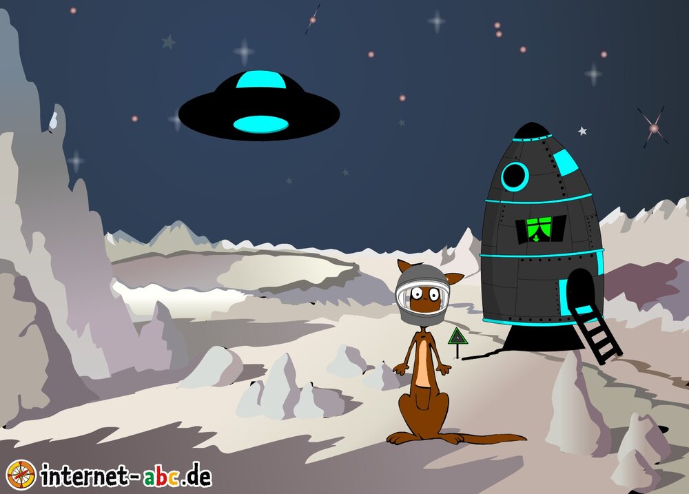 Mit der Rakete fliegen die 4 Internet-ABC-Tiere in den Weltraum. Was sie dort sehen und erleben, könnt ihr in diesem Baukasten malen und erzählen.