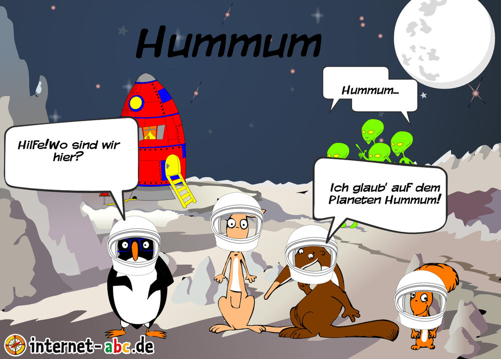 Mit der Rakete fliegen die 4 Internet-ABC-Tiere in den Weltraum. Was sie dort sehen und erleben, könnt ihr in diesem Baukasten malen und erzählen.
