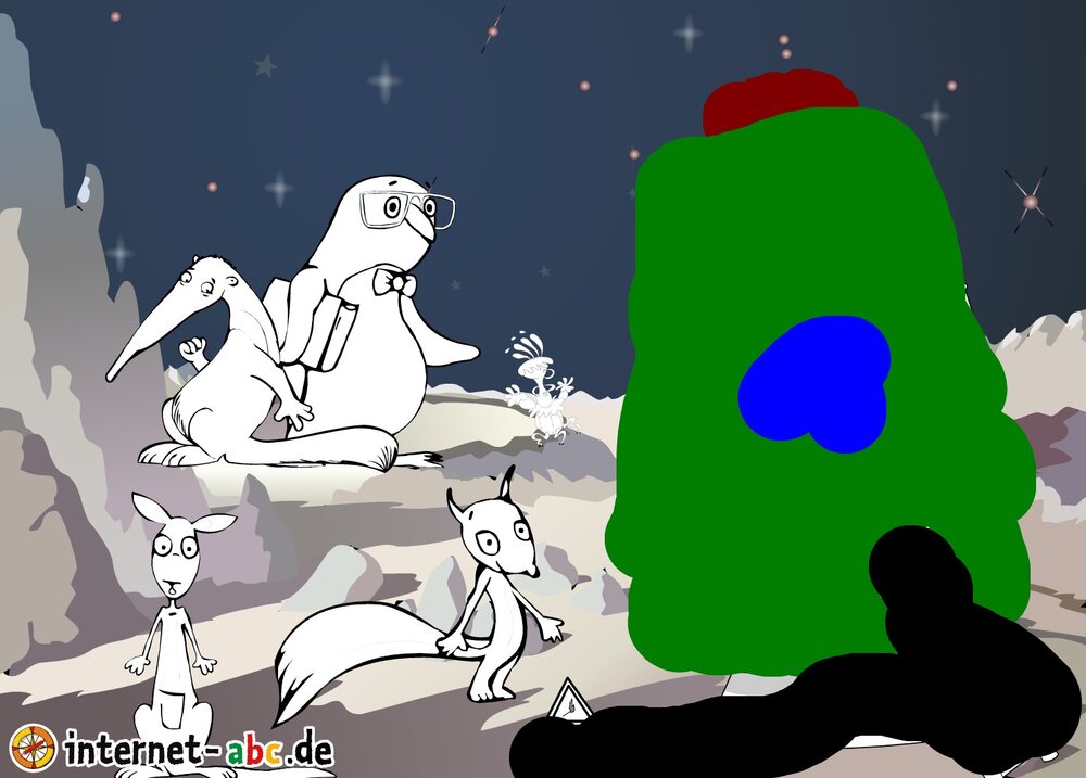 Mit der Rakete fliegen die 4 Internet-ABC-Tiere in den Weltraum. Was sie dort sehen und erleben, könnt ihr in diesem Baukasten malen und erzählen.