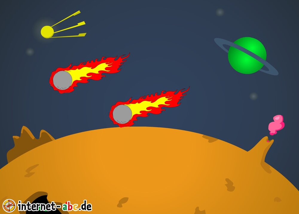 Mit der Rakete fliegen die 4 Internet-ABC-Tiere in den Weltraum. Was sie dort sehen und erleben, könnt ihr in diesem Baukasten malen und erzählen.