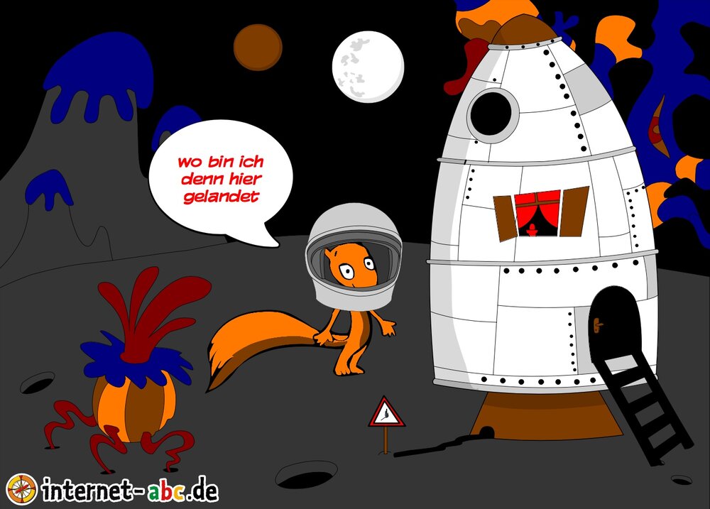 Mit der Rakete fliegen die 4 Internet-ABC-Tiere in den Weltraum. Was sie dort sehen und erleben, könnt ihr in diesem Baukasten malen und erzählen.