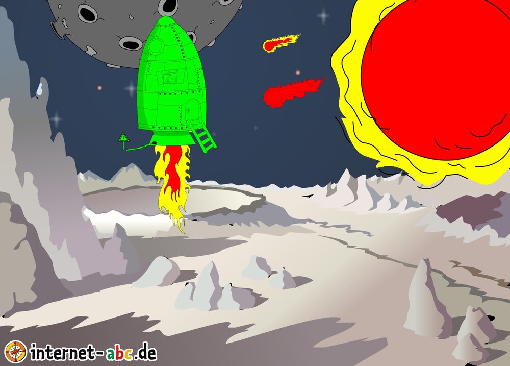 Mit der Rakete fliegen die 4 Internet-ABC-Tiere in den Weltraum. Was sie dort sehen und erleben, könnt ihr in diesem Baukasten malen und erzählen.