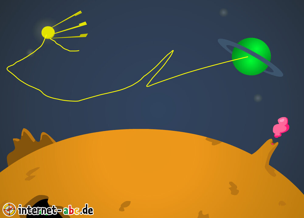 Mit der Rakete fliegen die 4 Internet-ABC-Tiere in den Weltraum. Was sie dort sehen und erleben, könnt ihr in diesem Baukasten malen und erzählen.