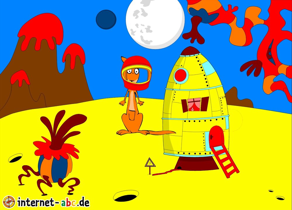 Mit der Rakete fliegen die 4 Internet-ABC-Tiere in den Weltraum. Was sie dort sehen und erleben, könnt ihr in diesem Baukasten malen und erzählen.