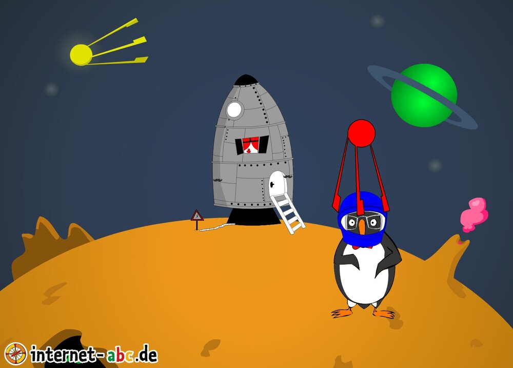 Mit der Rakete fliegen die 4 Internet-ABC-Tiere in den Weltraum. Was sie dort sehen und erleben, könnt ihr in diesem Baukasten malen und erzählen.