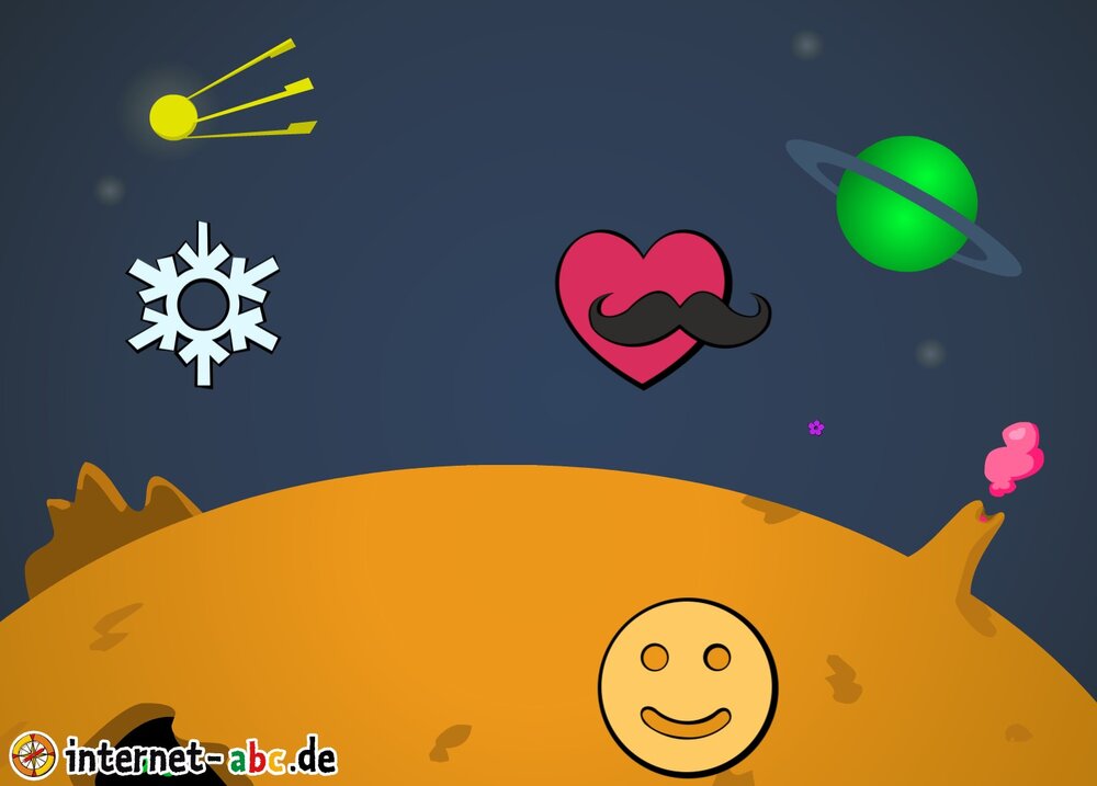 Mit der Rakete fliegen die 4 Internet-ABC-Tiere in den Weltraum. Was sie dort sehen und erleben, könnt ihr in diesem Baukasten malen und erzählen.
