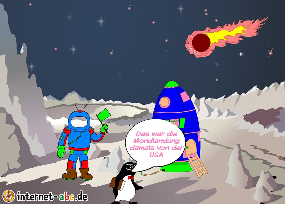Mit der Rakete fliegen die 4 Internet-ABC-Tiere in den Weltraum. Was sie dort sehen und erleben, könnt ihr in diesem Baukasten malen und erzählen.