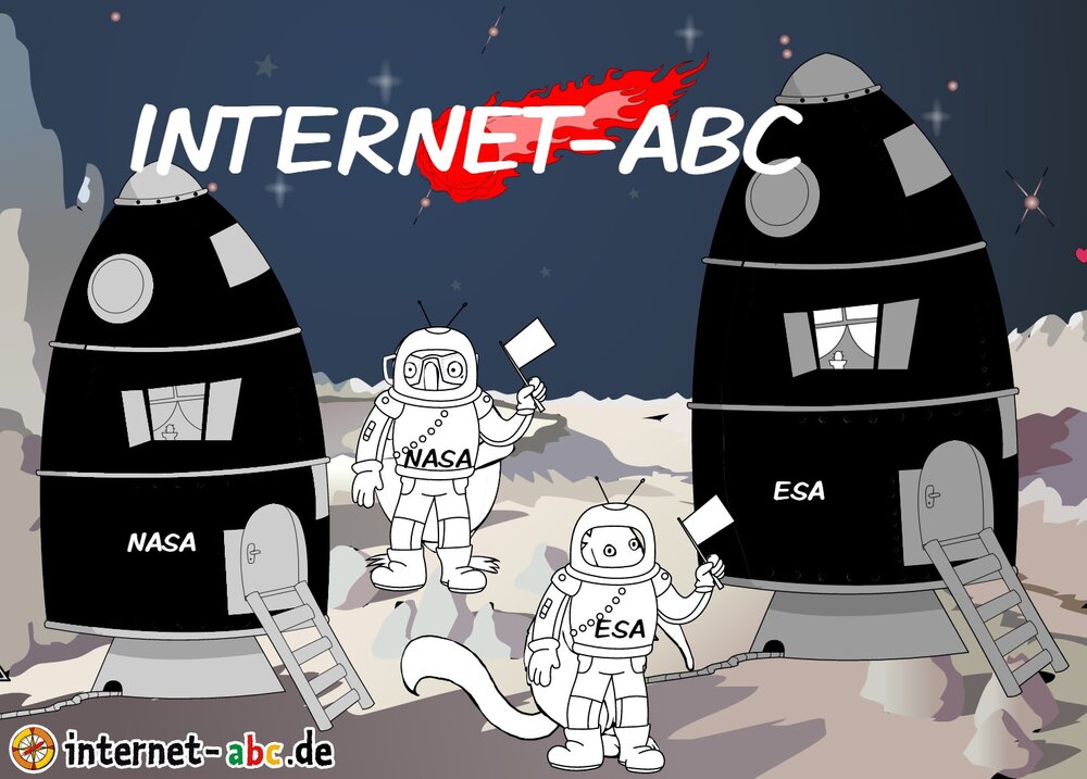 Mit der Rakete fliegen die 4 Internet-ABC-Tiere in den Weltraum. Was sie dort sehen und erleben, könnt ihr in diesem Baukasten malen und erzählen.