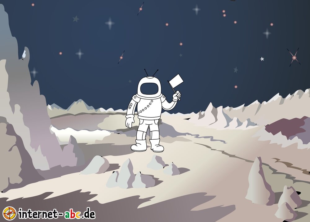 Mit der Rakete fliegen die 4 Internet-ABC-Tiere in den Weltraum. Was sie dort sehen und erleben, könnt ihr in diesem Baukasten malen und erzählen.