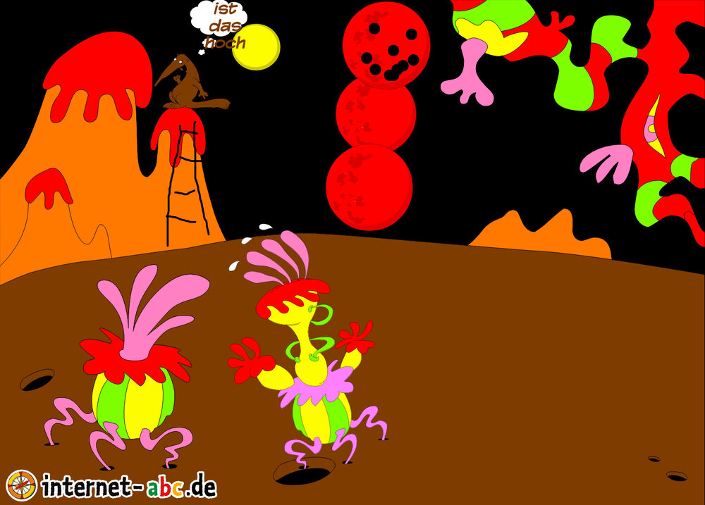 Mit der Rakete fliegen die 4 Internet-ABC-Tiere in den Weltraum. Was sie dort sehen und erleben, könnt ihr in diesem Baukasten malen und erzählen.