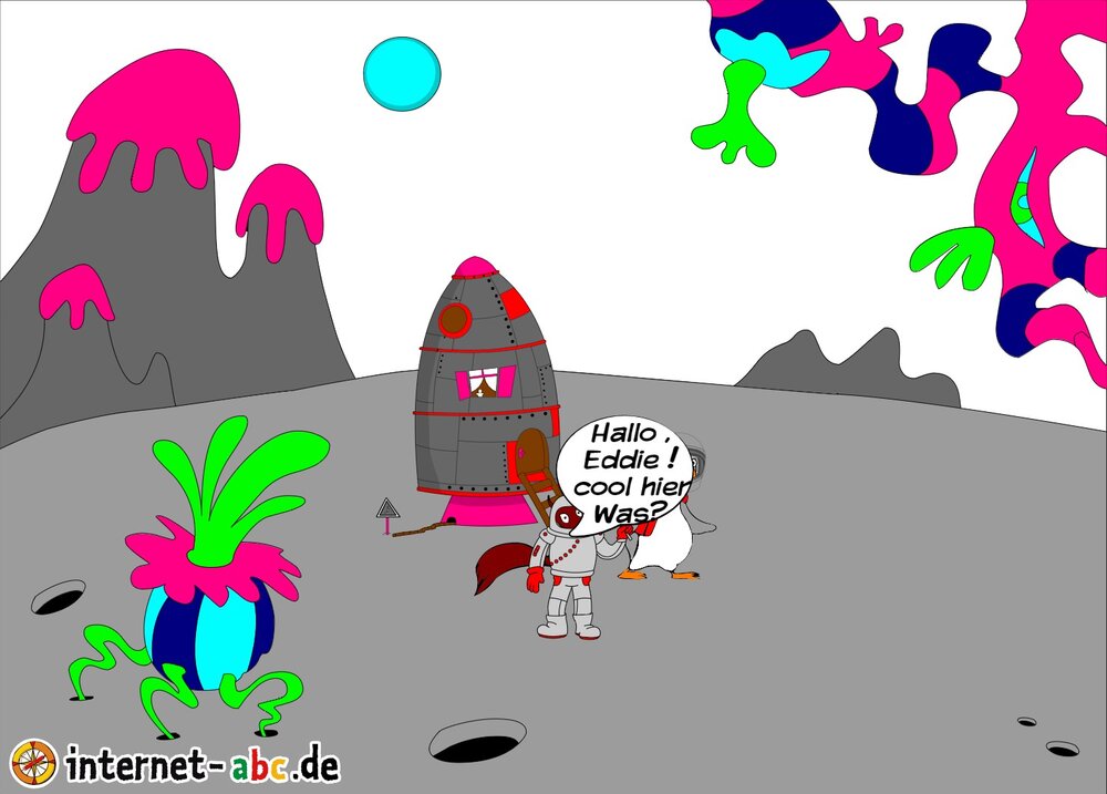 Flizzy & Eddie sind mit ihrer Rakete auf einem fremden Planeten gelandet.