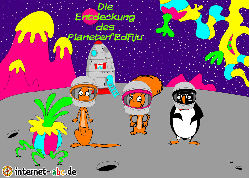 Mit der Rakete fliegen die 4 Internet-ABC-Tiere in den Weltraum. Was sie dort sehen und erleben, könnt ihr in diesem Baukasten malen und erzählen.